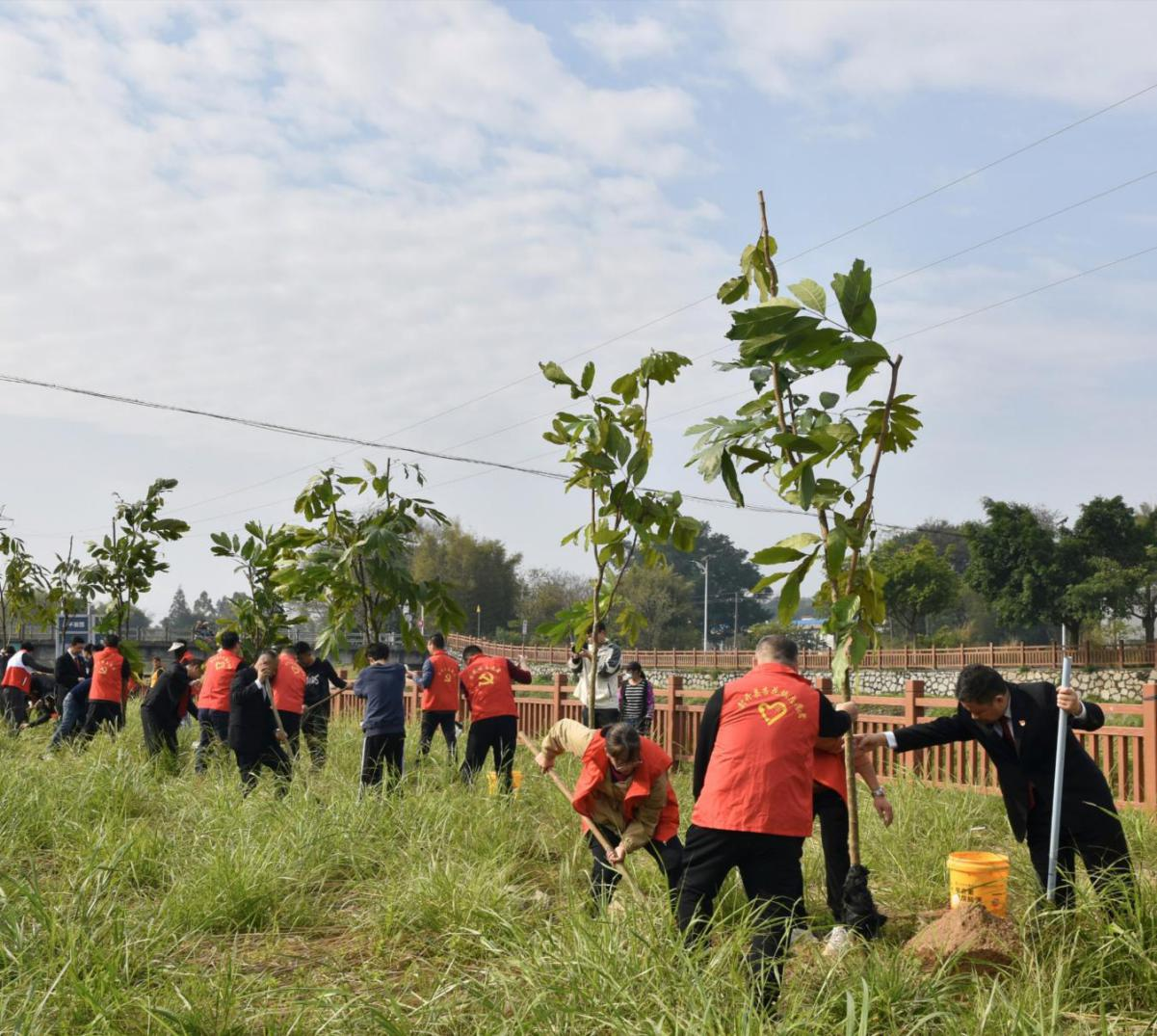 在封开法院院长杨岭峰、杏花镇党委书记李彦玉的带领下,党员代表们踊跃参与,挖坑填土、搬运树苗、扶苗踩实……大家分工协作、干劲十足,经过2个多小时热火朝天的忙碌后,100余棵无忧树在大斑石下“安家落户”,为杏花河畔构筑起了一道守护绿水青山的“法治绿盾”。