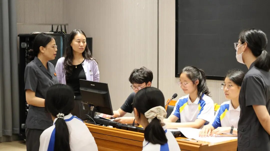活动开始前,封开法院刑庭庭长蒙艳华从庭审的基础环节,对同学们进行“面对面”指导:说明开庭、法庭调查、法庭辩论、被告人最后陈述、评议宣判五个环节的发言顺序,演练“申请审判长询问证人”“对证据真实性提出异议”等规范用语……